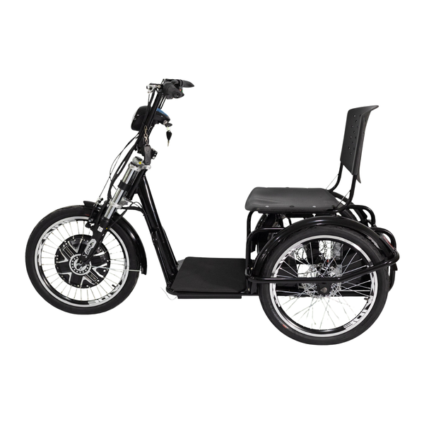 Um triciclo versátil, estável e preparado para cargas leves, compras, deslocamentos urbanos e uso cotidiano.